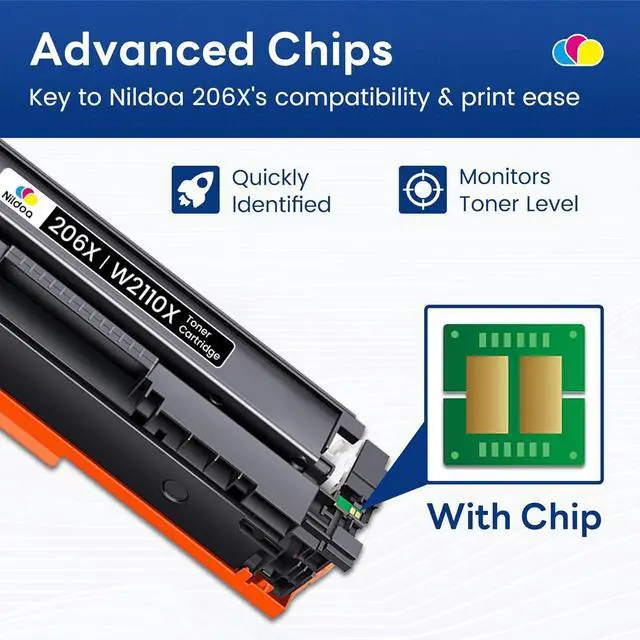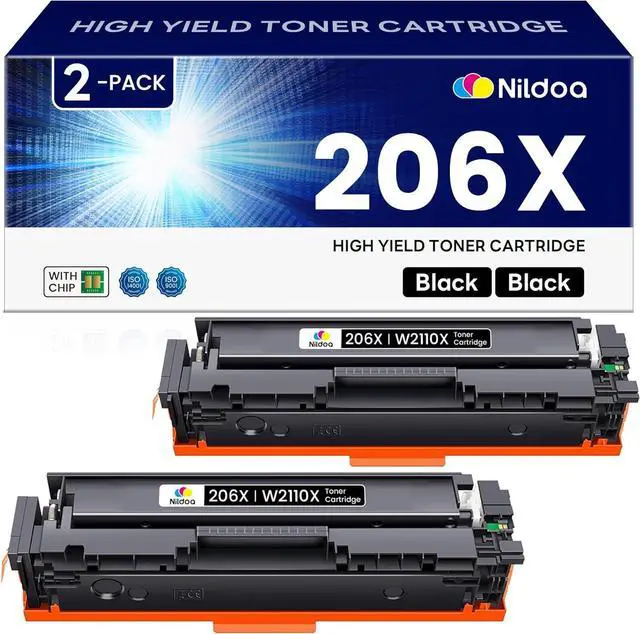 Package Contents: Nildoa 2 Pack 206X Compatible Replacement for HP 206X W2110X Black Toner Cartridge High Yield with Chip