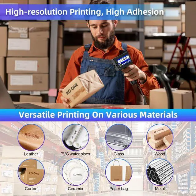 Diverse Content Printing: Whether it's text, QR codes, barcodes, dates, or logos (in "BMP, JPG, PNG" format), handheld printer caters to various industries including warehousing, retail, logistics, and DIY workshops.