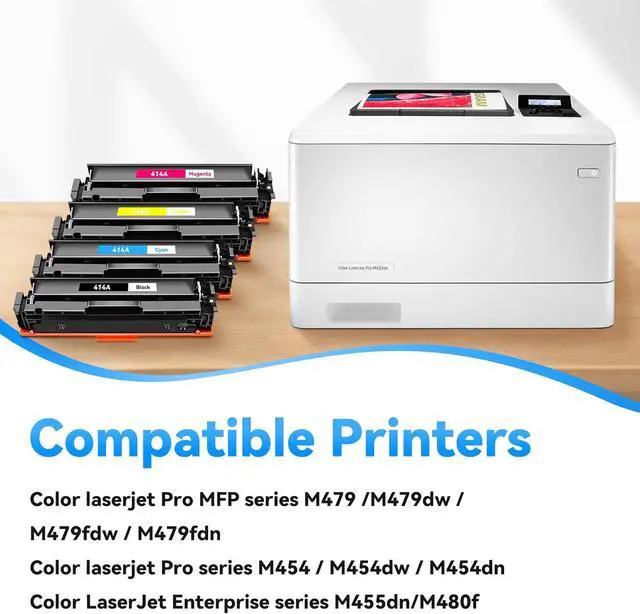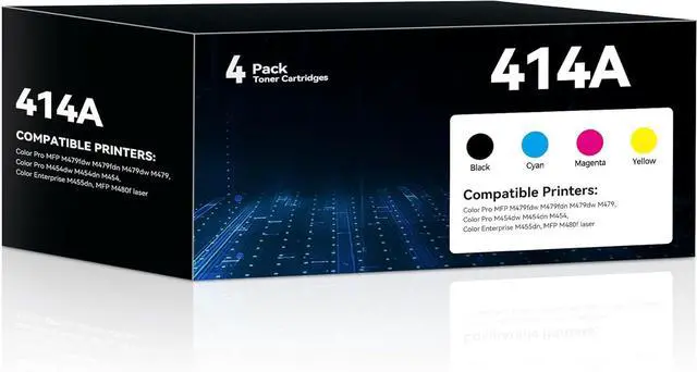 Compatible for Printer: 414A 414X toner for color laser jet pro mfp m479fdw toner cartridges. Compatible with HP Color Laser Jet Pro MFP M479fdw, MFP M479fdn, MFP M479dw, MFP M479; for Color LaserJe Pro M454dw, M454dn, M454; for Color Enterprise M455dn, Enterprise MFP M480f Printer