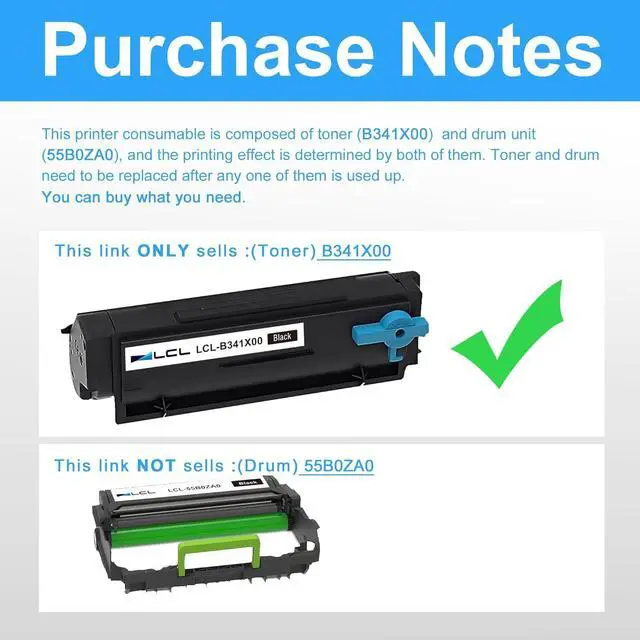 Reliable Quality: LCL B341X00 cartridge uses high quality toner, toner particle size distribution, good mobility, high transfer rate, resulting in a clear image and high gloss print effect; Printing efficiency is high, waste powder rate is low, so as to ensure sufficient page yield.