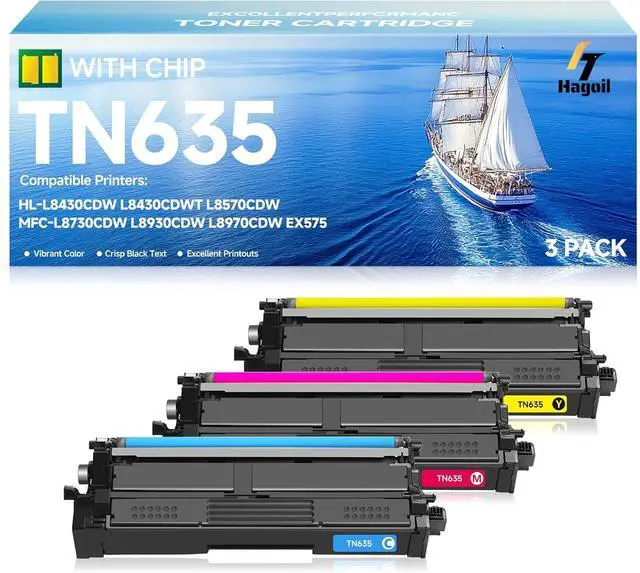 Package Contents: 3 Pack TN635 Toner Cartridges Compatible Replacement for TN635 Toner Cartridge (1 x TN635 Cyan 1 x TN635 Magenta 1 x TN635 Yellow Toners)