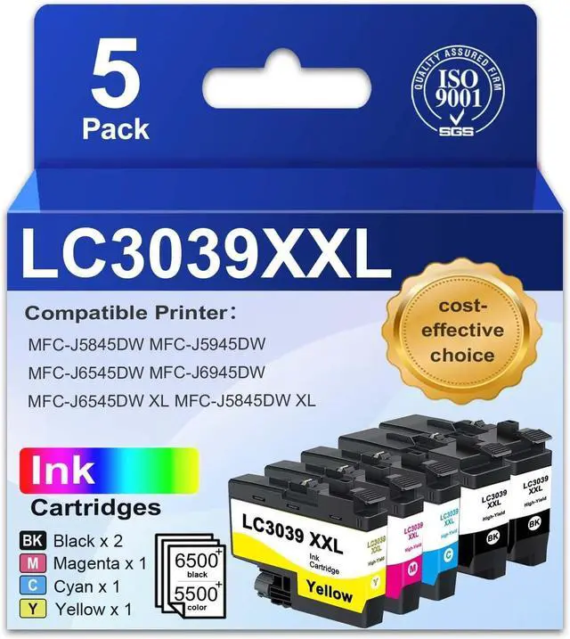 Number of sheets printed: Each LC3039XXL black ink cartridges can print up to 6500 pages, and each LC3039XXL cyan, magenta, and yellow ink cartridge can print up to 5500 pages. (A4 paper coverage rate of 5%)