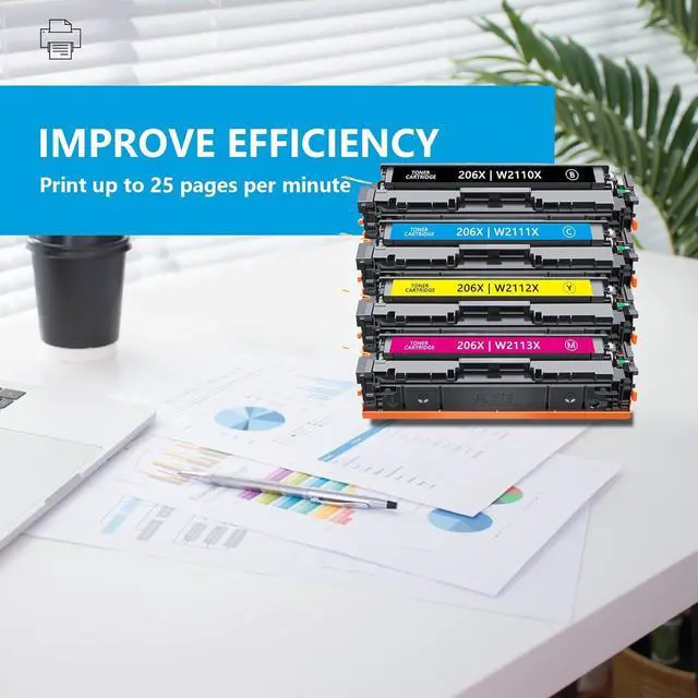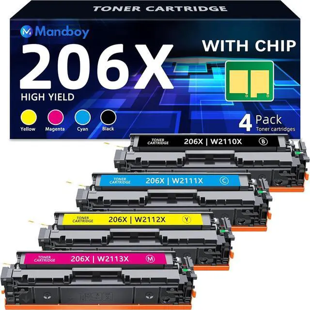 Includes: You will receive 206X Toner Cartridges 4 Pack high yield (1 pack 206X W2110X Black toner, 1 pack 206X W2111X Cyan toner, 1 pack 206X W2112X Yellow toner, 1 pack 206X W2113X Magenta toner)
