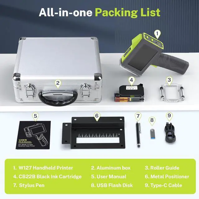 Print Any Information: This handheld inkjet printer prints text, date, time, QR code, DM code, barcode, logo, images, etc. Support file import including JPG, PNG, BMP, TXT format. Variable database printing is available too.