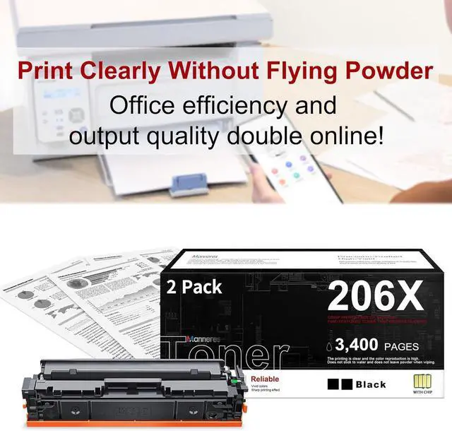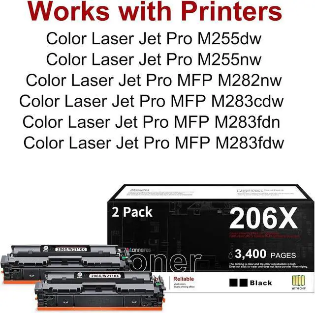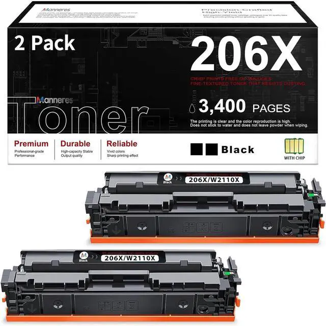 Package contents:2 x 206X W2110X black toner (Each toner cartridge is pre-installed with an advanced chip and comes with a detailed installation guide)