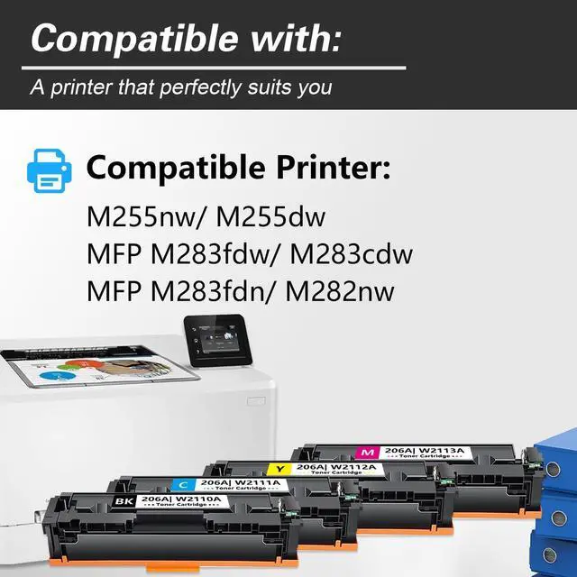 This Cartridge Works with: The 206a 206x Replacement for HP Color Laser Jet Pro M255nw M255dw MFP M283fdw M283cdw M283fdn M282nw Printer toners