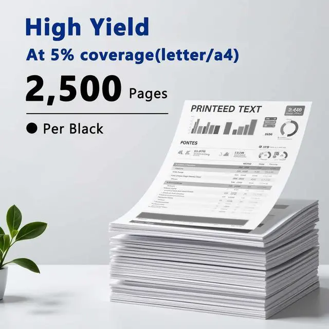 High Page Yiled: 2,500 pages per Black cartridge at 5% coverage (Letter/A4)