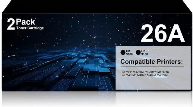 Package contains:2 Pack Black 26A CF226A Toner Cartridges