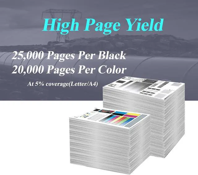 Higher Page Yield:Up to 25,000 Pages per W9100MC Black and 20,000 Pages per W9101MC W9102MC W9103MC Color (based on 5% coverage test on A4 paper)