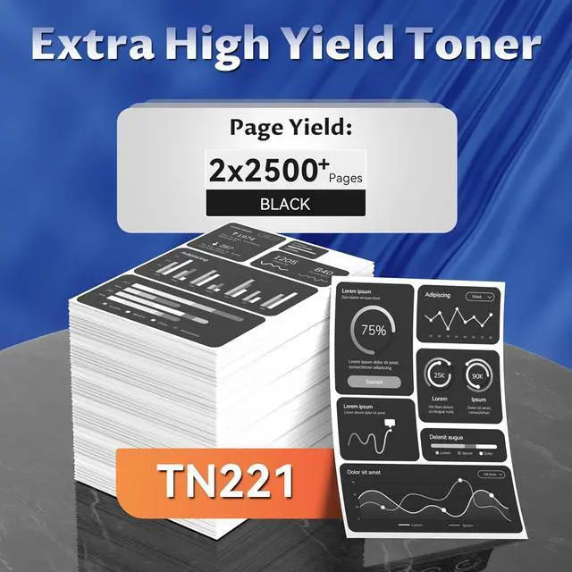 Exceptional Page Yield: TN221 Black delivers 2,500 pagesat 5% A4 coverage, reducing frequent replacements for office efficiency.