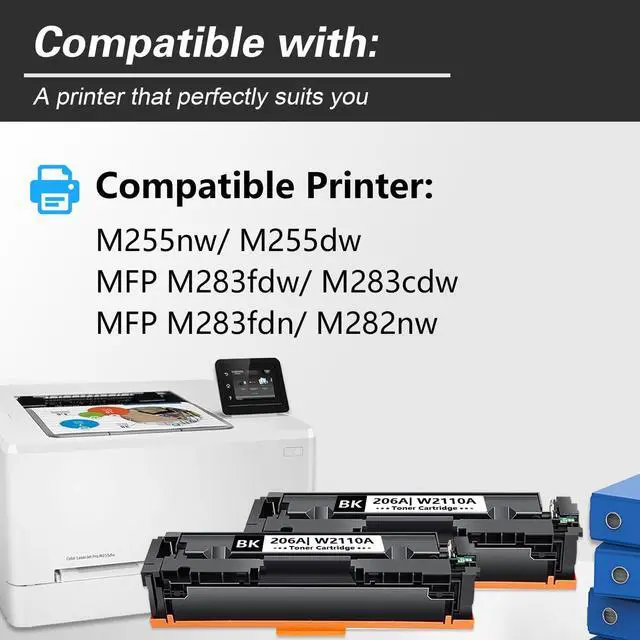 This Cartridge Works with: The 206a 206x Replacement for HP Color Laser Jet Pro M255nw M255dw MFP M283fdw M283cdw M283fdn M282nw Printer toners