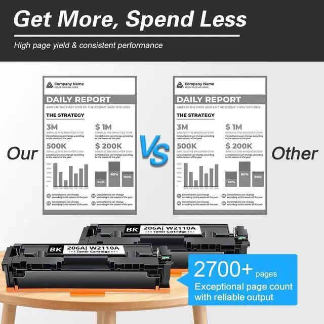 Delivers Sharp Texts, Crisp Images, and Stable Compatibility, No Fading, No powder leakage, No StreakOur 206A Toner Cartridge provides the printing experience vital for your printing productivity