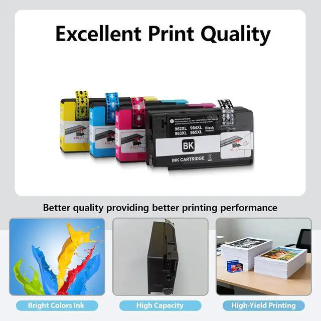With the latest chips: 962XL ink cartridges employ cutting-edge chip technology and are specifically designed for 'HP+' printers, ensure perfect compatibility with printers and excellent printing quality, than you can enjoy efficient and worry-free printing