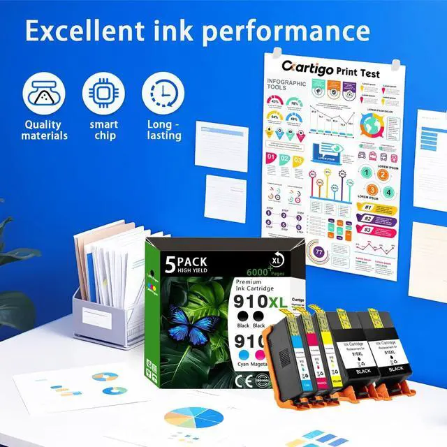 High quality: Our 910XL Ink Cartridges deliver vibrant, smudge-free prints with sharp text and rich colorsperfect for businesses, schools, hospitals, or frequent home users who demand professional results