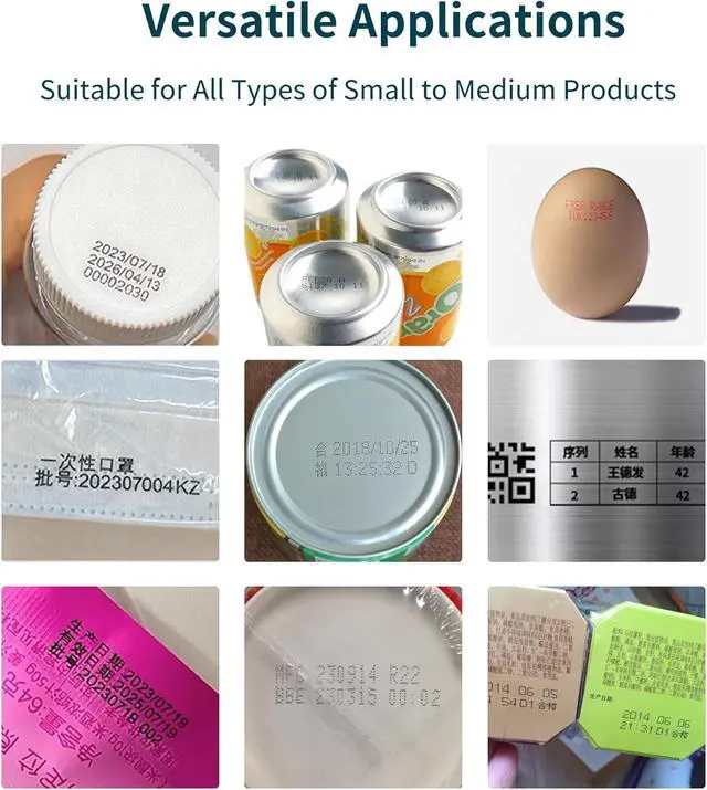A Variety of ContentPhezer desktop batch coder printer meets the needs of various industries for marking various content on products. Phezer Static desktop inkjet printer can be used to print text, serial bacth/lot number, barcode, QRCODE, variable QRCODE, production date, time, expired date, picture(jpg.png.bmp). Phezer portable inkjet printer has built-in multiple fonts and also supports importing fonts (font format ttf).