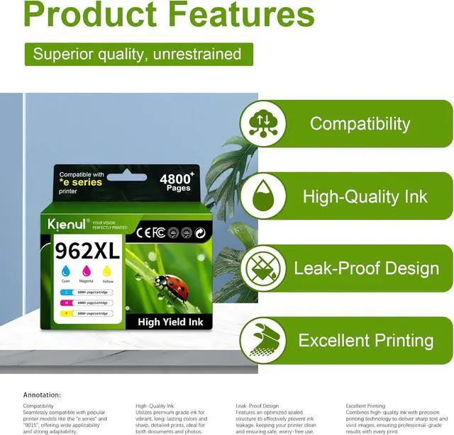 Package Contents: 962XL Ink Cartridges Combo Pack, 962XL Cyan Ink×1, 962XL Magenta Ink×1, 962XL Yellow Ink×1