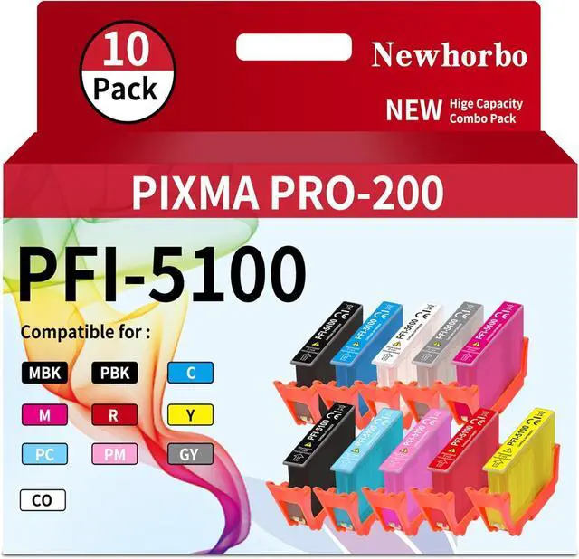 Package Contents: 10-Pack PFI-5100 Ink Cartridge Matte Black, Photo Black, Cyan, Magenta, Yellow, Red, Gray, Photo Cyan, Photo Magenta