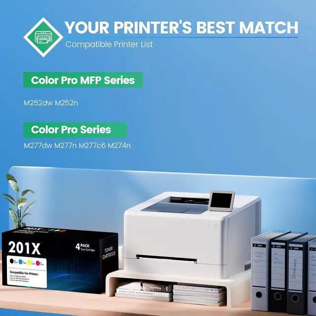 High Page Yield: 2,800 Pages for 201X Black Toner Cartridges and 2,300 Pages for 201X Color Toner Cartridges (Letter/A4, at 5% Coverage), work for HP color pro mfp m277dw toner cartridges