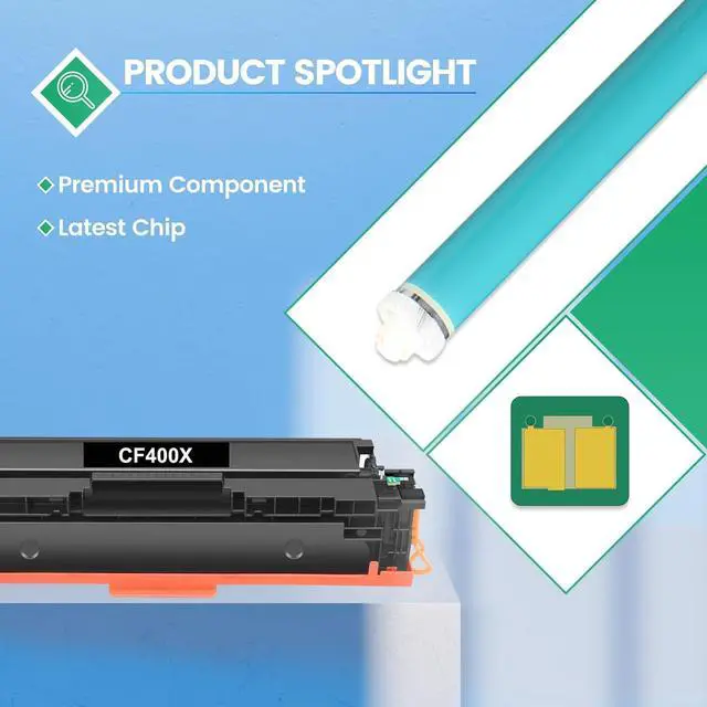 Package Contents: 1 x 201X CF400X black toner, 1 x 201X CF401X cyan toner, 1 x 201X CF402X yellow toner, 1 x 201X CF403X magenta toner