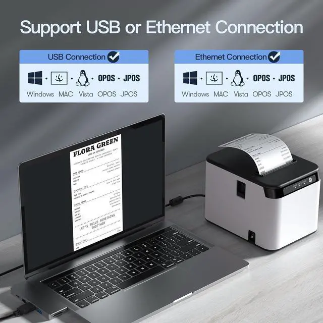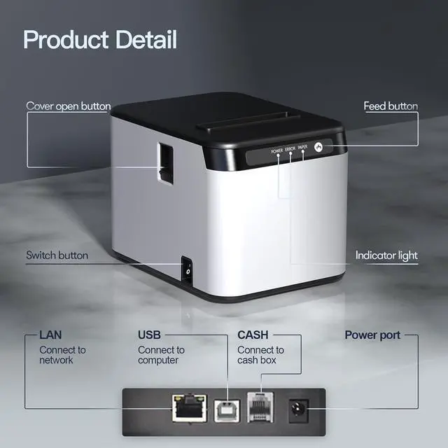 USB Receipt Printer: Our receipt printer supports both USB and LAN connectivity, providing convenience and ease of use. It is compatible with various operating systems such as Windows XP/VISTA/7/8/10.