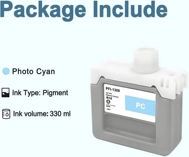 Package Contents: 1 x 700ml pigment PFI 1300 photo cyan cartridge with newest chip