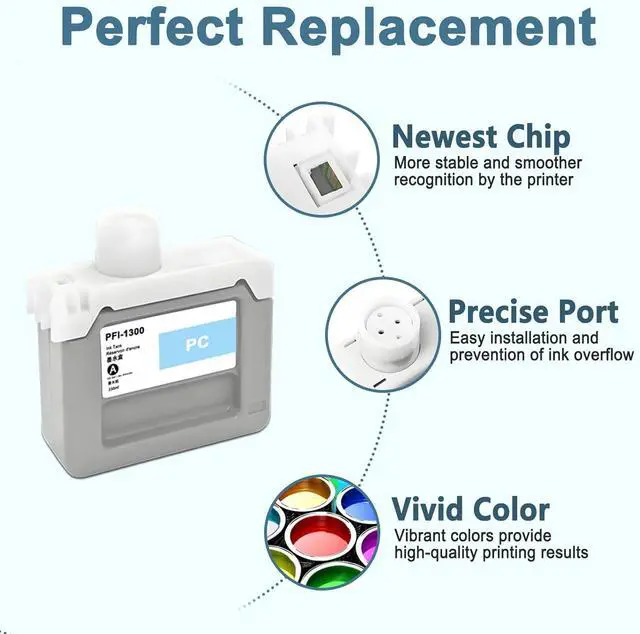 Superior Quality: This high-yield PFI-1300 ink cartridge uses the latest chip technology and high-quality pigment ink, with an anti clogging nozzle design and easy installation. Provide clear text and graphics