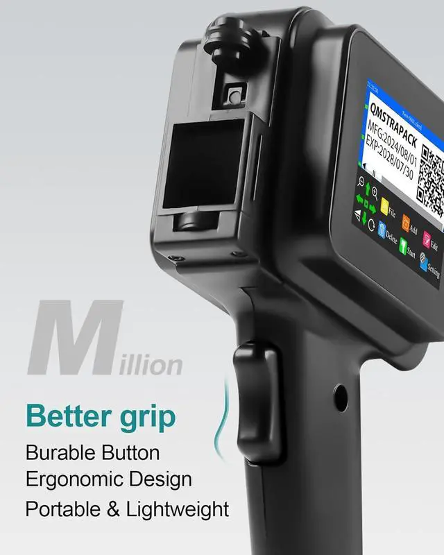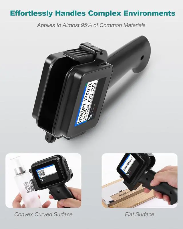 Compact Size, Full Functionality: This upgraded mini handheld inkjet printer (7*4.3*2 inches, 0.7 lbs with cartridge) perfectly merges the portability of a mini inkjet printer with the ergonomic advantages of a handheld model. Designed with ergonomic handle for smoother, more comfortable use, it outperforms standard mini printers by providing better control and ease of operation. Unlike bulky traditional handheld printers, its compact size ensures precise printing in hard-to-reach areas, including tight spaces, curved surfaces, and uneven texturesmaking it ideal for specialized tasks without sacrificing speed or performance.