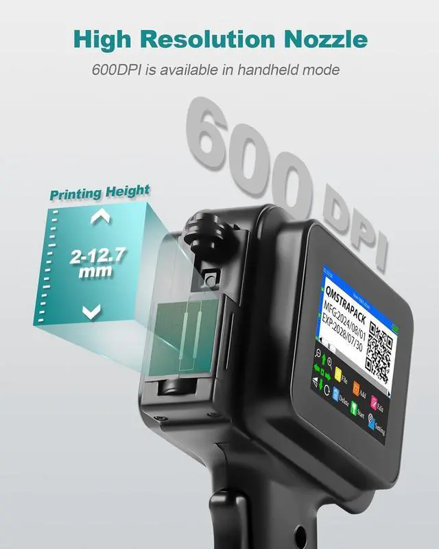 Compact Powerhouse: our mini handheld inkjet printer delivers the full functionality of larger machines. It prints text, labels, digital content, QR codes, barcodes, production dates, and logos on a wide range of surfaces, including wood, fabric, paper, cardboard, glass, steel, plastic, aluminum foil, and cables. Supporting up to 28 languages and allowing for the editing of up to 5 lines of content, this versatile printer is the ultimate solution for any printing task, combining power, precision, and flexibility in one compact device.