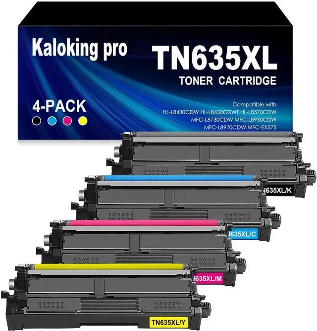 This product is a 4-pack of TN635XL toners containing one each of black, cyan, yellow, and magenta .