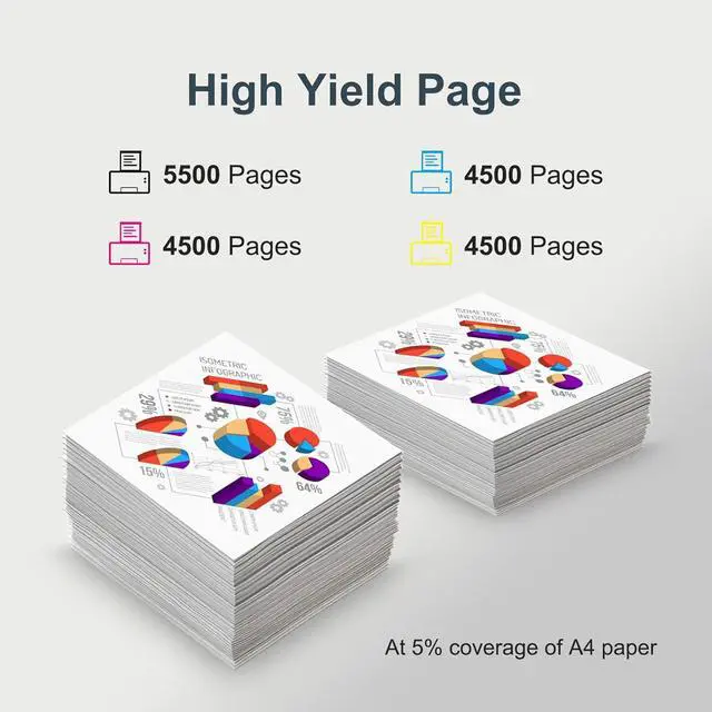Reliable High-Volume Output: Consistently deliver up to 5,500 black and 4,500 color prints from a single set of cartridges.