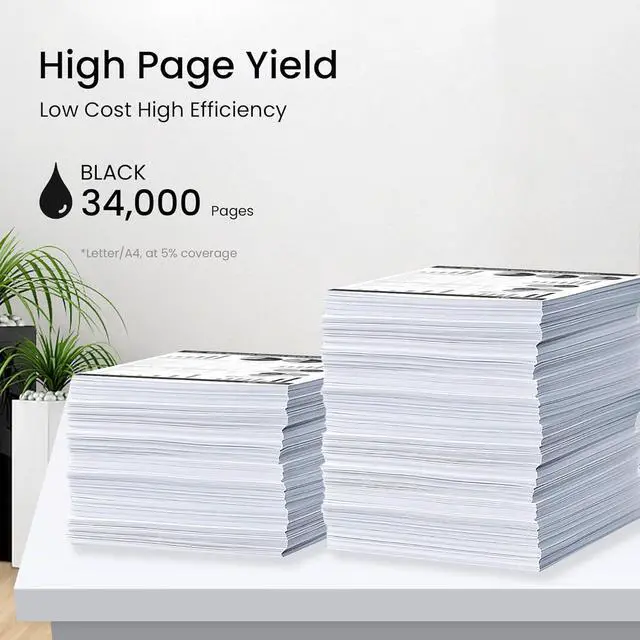 Exceptional Page Yield: 34,000 Pages per W9190MC toner cartridges, 5% coverage at A4 paper.