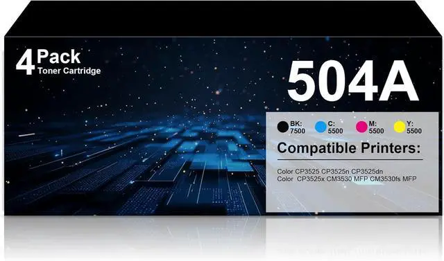 Package contains:4 Pack 504A Toner Cartridges