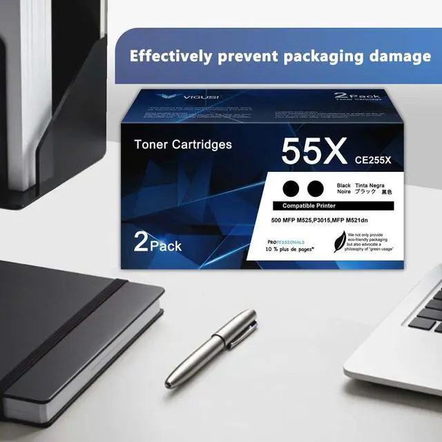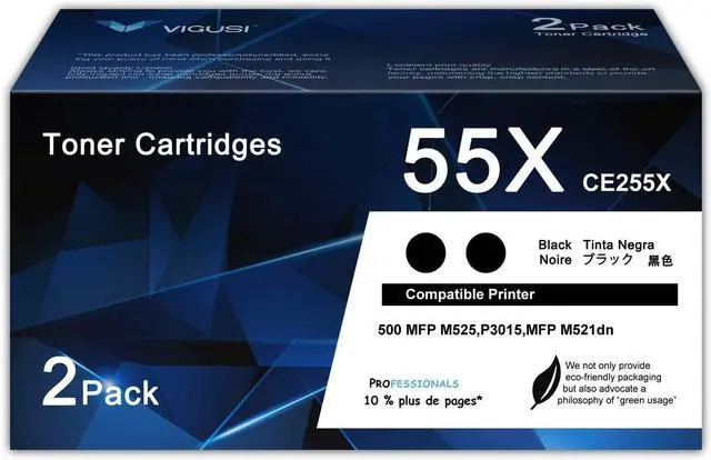 CE255X 55X High Yield Toner Cartridges (Black, 2-Pack) Compatible Replacement for HP 55A 55X CE255A CE255X P3015 With P3011 P3015d P3015x P3015dn P3016 Pro 500 MFP M521dn M521dw M521 Printer