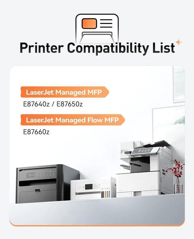 Compatible with HP Color LaserJet Managed MFP E87640z E87650z Color LaserJet Managed Flow MFP E87660z Printers.
