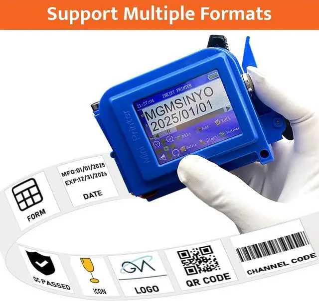 Portable and ergonomic anti-slip hand-held printing gun weighs only 380 grams (including ink cartridge), which can minimize hand fatigue when used for a long time and is an ideal choice for mobile tasks. With print-and-dryhigh adhesion and waterproof ink, which is suitable for various occasions.If the printing is wrong, you can use 95-degree industrial alcohol or professional cleaner to remove it.