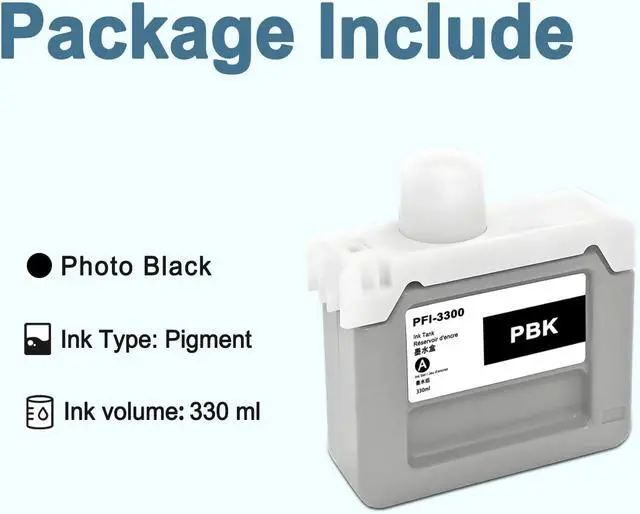 Package Contents: 1 x 330ml pigment PFI 3300 photo black cartridge with newest chip