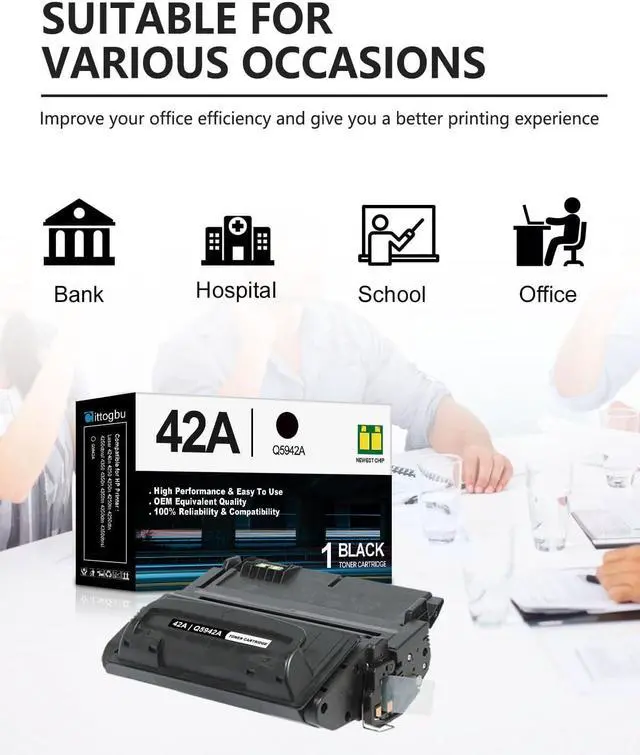 Product in the box: 1 Pack 42A toner cartridge, 42A Q5942A toner (Black)