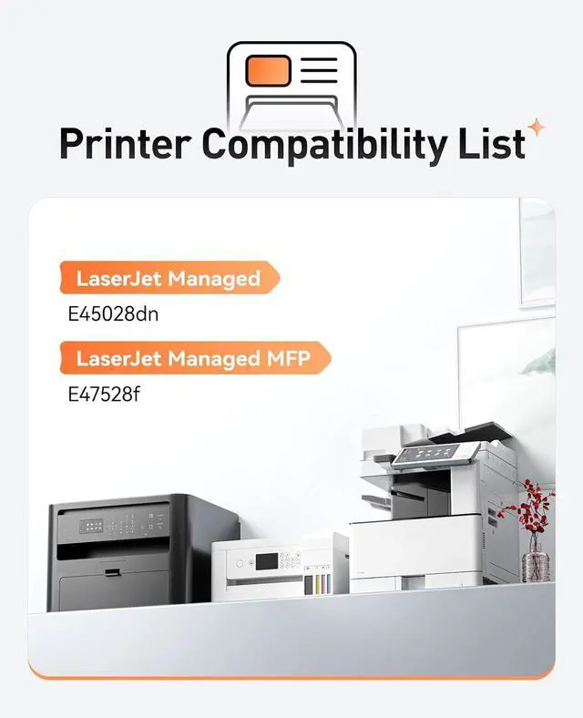 Compatible PrinterCompatible with HP Color LaserJet Managed E45028dn Color LaserJet Managed MFP E47528f Printers.