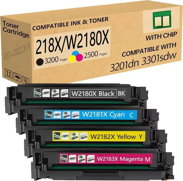 Smart Chip Technology for Instant Recognition:K-ZIN 218X Toner Cartridges 4 Pack features the latest smart chip technology ensuring seamless compatibility with HP Color LaserJet Pro series printers No manual chip transfer required simply install and print Designed for HP 218X 218A and HP Color LaserJet Pro MFP 3301FDW 3201DW 3301CDW printers this plug-and-play solution saves time while maintaining OEM-level recognition Ideal for home office printers and high-volume laser color printers