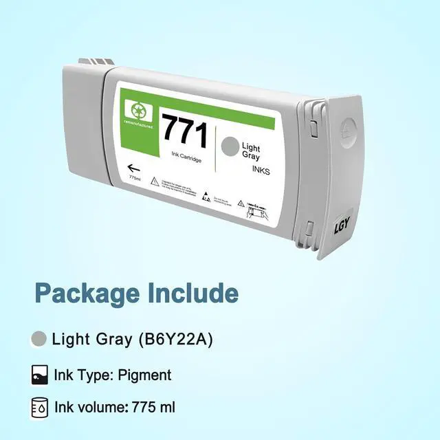 Package Contents: 1 x 771A Light Gray (B6Y22A) , each ink cartridge capacity is 775ml