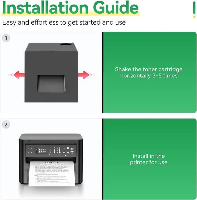 The latest chip version: Zstint the toner cartridge is equipped with the latest upgraded version of the chip, ensuring perfect compatibility with each toner cartridge and quick recognition of the printer, allowing you to enjoy efficient and worry-free printing. Our toner cartridge have passed ISO9001 and ISO14001 certification. High-quality toner cartridge meet the demands of high print volumes. Fine toner ensures clear and stain-free printing results and extends the service life of the printer. The printing effect is stable and reliable. You can install and replace it directly without manual adjustment.
