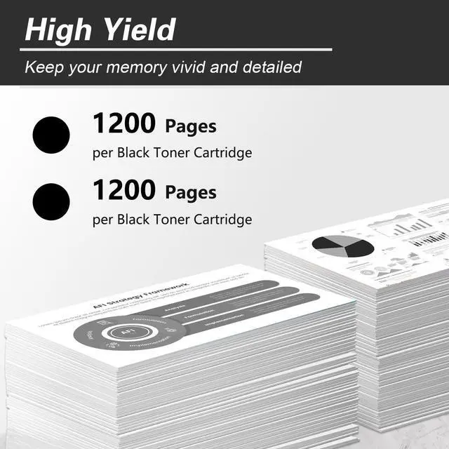 Page Yield : Black is 1200 pages per Toner Cartridge(at 5% coverage, Total 2 Pack)