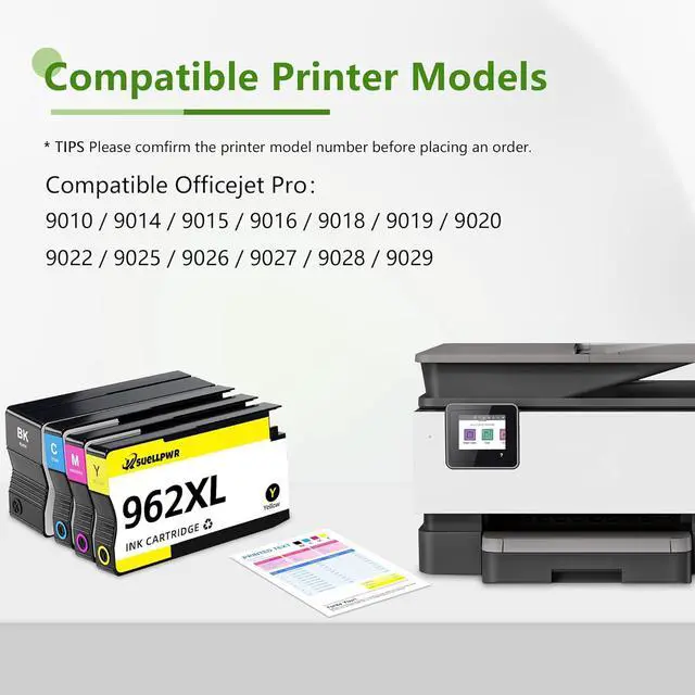 Ink 962XL Compatible Printers: OfficeJet Pro 9010 9014 9015 9016 9018 9019 9020 9022 9025 9026 9027 9028 9029 9015e 9025e 9018e 9012e 9010e 9014e 9019e 9020e 9022e 9028e printer