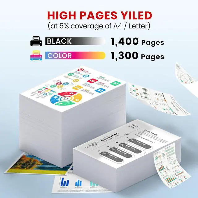 High Page Yield: 075 Black Toner Cartridge can print 1,400 pages, and each 075 color Toner Cartridge can print 1,300 pages (5% coverage/A4 paper)