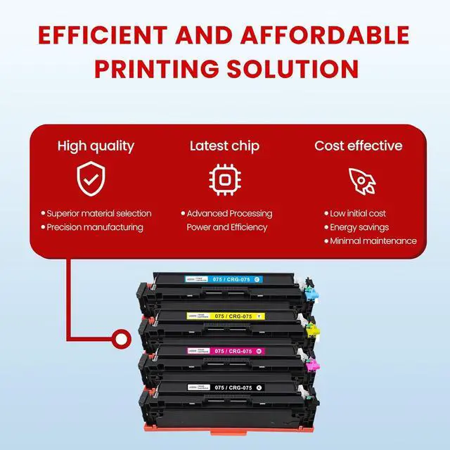 Smart chip technology: CRG075 toner cartridge with smart chip enables instant auto-recognition and full compatibility. Its plug-and-play design eliminates setup hassles, delivering seamless office productivity