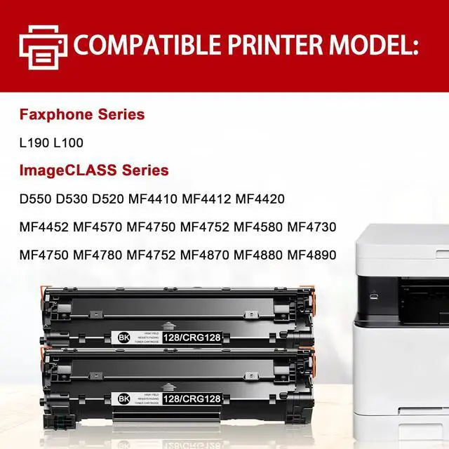 Compatible with: 128 toner replacement for canon 128 toner Faxphone L190 L100 ImageCLASS D550 D530 D520 MF4410 MF4412 MF4420 MF4452 MF4570 MF4750 MF4752 MF4580 MF4730 MF4750 MF4780 MF4752 MF4870 MF4880 MF4890 Printer