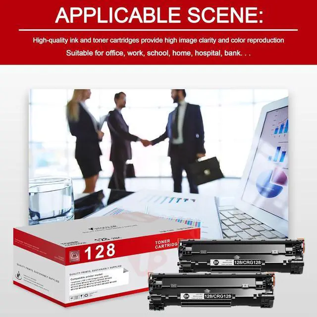 High Page Yield: 128 toner cartridges 2 Pack Up to 2,100 Pages for 128 Black Toner Cartridge(at 5% coverage on Letter/A4 size)