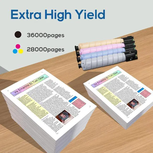 High Page YieldVersaLink C8130 C8135 C8145 C8155 C8170: Extra High Yield 59000 pages per Black toner cartridge,28000 pages per Color toner cartridge at 5% coverage of A4 Paper. (depends on printer and usage)