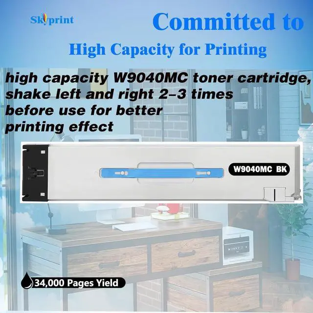 SkyPrint W9040MC toner cartridges come with intelligent chips that automatically recognize and provide printing , Not damaging the machine,Shake the toner cartridge horizontally 2-3 times before use to evenly distribute the toner,providing you with better clear and natural printing effects