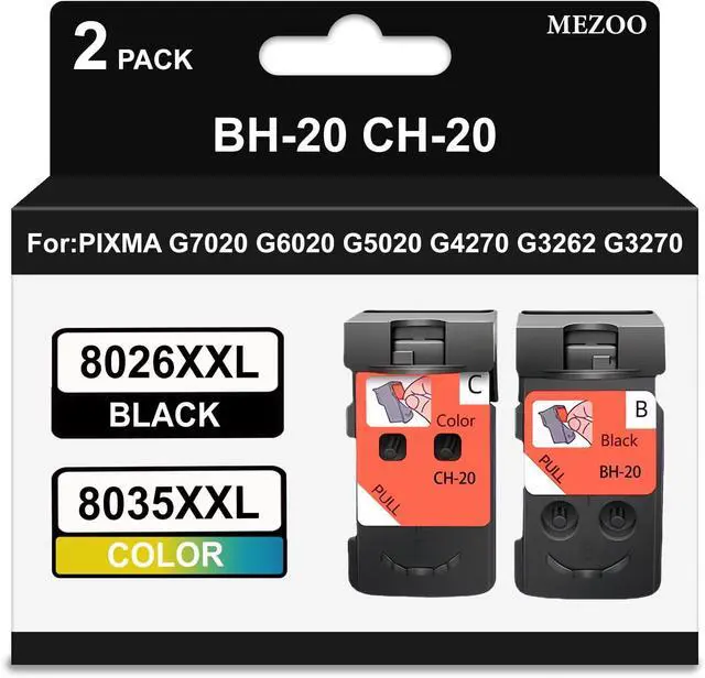 Package Contents:2 Pack BH-20 CH-20 PrinterHead (1 Pack PG-8026XL Black Printhead and 1 Pack CL-8035XL Tri-Color Printhead)